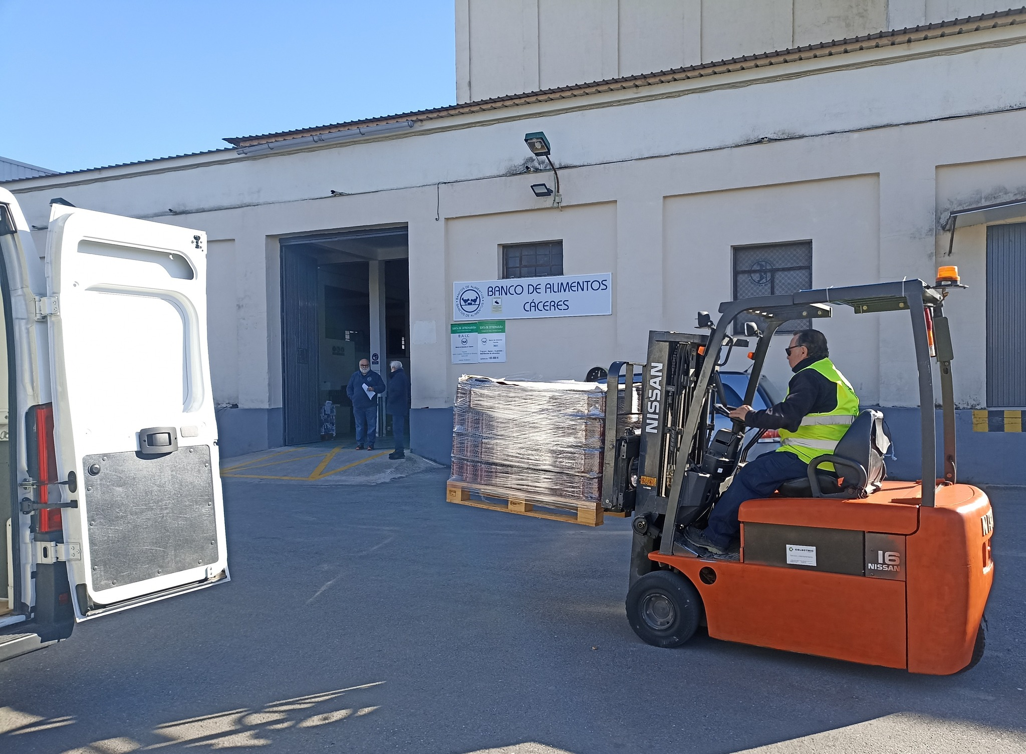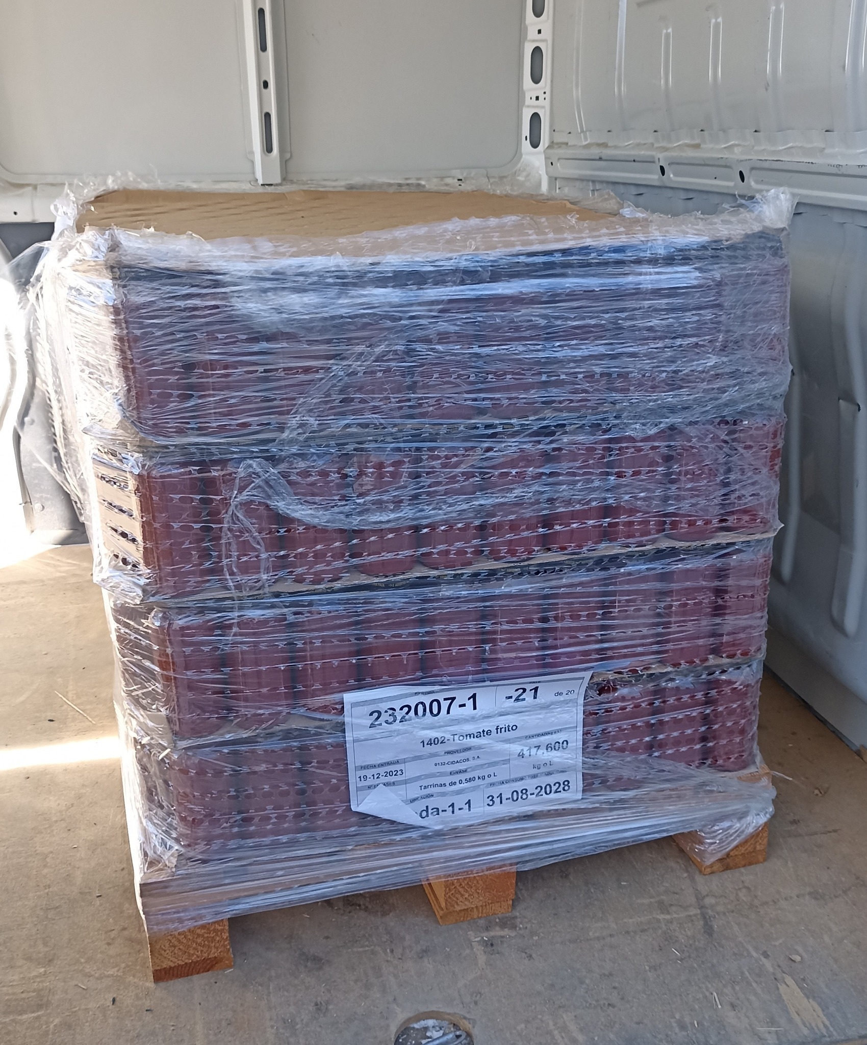 Fruto de las buenas relaciones de intercambio de productos entre los Bancos de Alimentos de España, hemos llevado al Banco de Salamanca 850 kilos de tomate frito y 1.210 kilos de latas de aceitunas, y nos hemos traído 500 kilos de mermelada y 2.160 docenas de huevos que se repartirán entre personas desfavorecidas de la provincia de Cáceres.